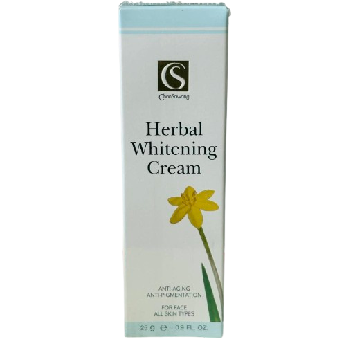เฮอร์เบิล ไวท์เทนนิ่ง ครีม เฮอร์เบิล ไวท์เทนนิ่ง ครีม(HERBAL WHITENING CREAM) ฿380.00 รายละเอียดครีมทาฝ้า กระ จุดด่างดำ ช่วยขจัดเซลล์ผิวที่เสื่อมสภาพที่เป็นสาเหตุของใบหน้าหมองคล้ำ ใช้เป็นประจำช่วยปรับสภาพผิวให้กระจ่างใสขึ้นอย่างเป็นธรรมชาติ ข้อมูลเพิ่มเติมสภาพผิวที่เหมาะสมAll Skin Typeวิธีการใช้แต้มเนื้อครีม 5 จุด บนใบหน้าแล้วเกลี่ยวให้ทั่ว เว้นผิวบริเวณรอบดวงตา และริมฝีปากส่วนประกอบหลักสมุนไพรสูตรเฉพาะของจันทร์สว่าง